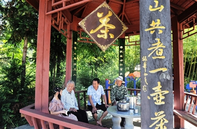 桂梅亭緊挨廈鋪河,是周邊幾個村村民出山的必經之地,每天南來北往的人不少。打小在大山里熬過,徐桂梅深知趕路后對茶水的渴望。36年前,年近60歲的徐桂梅做了一個決定——免費為過路的村民、行人提供涼茶。