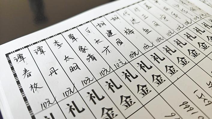 禮金簿219個(gè)親友名下齊刷刷寫著10元