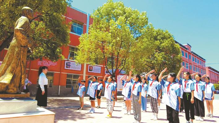 老河口袁沖小學在袁書堂紀念館開展愛國主義教育。