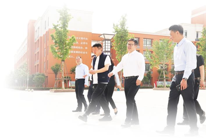 孝感農(nóng)商行黨委書(shū)記、董事長(zhǎng)秦斌(右二)走訪合作學(xué)校。