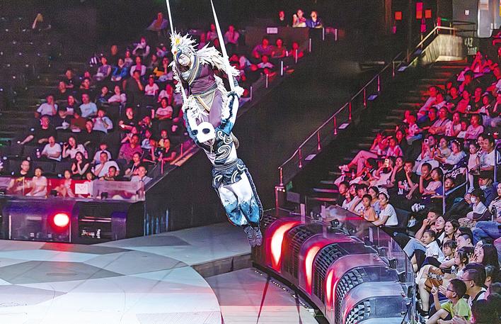 浠水雜技劇《黑白俠影·太極熊貓》在武漢漢秀精彩上演。 (湖北日報全媒記者 薛婷 攝)