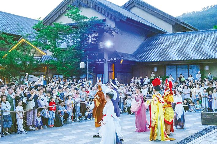 “這種‘移動戲臺’模式,將經典黃梅戲角色與舞臺劇、舞蹈等現代元素相結合,深受游客喜愛。”景區負責人馬潔透露,“五一”假期,單日游客接待量突破一萬人次,較去年同期增長35%。