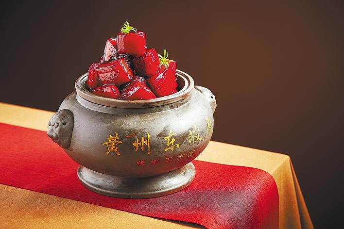 “慢著火,少著水,火候足時它自美。It is soft but not overcooked, fat but not greasy.”走進位于黃岡遺愛湖內的水韻荷香景區,黃岡品鑒老饕餐飲服務有限公司總經理、黃州東坡美食文化研發傳播中心負責人余民愿,正在用雙語推介蘇東坡謫居黃州時創制的美食——東坡肉。