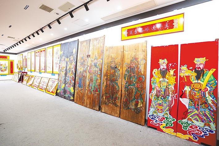 漢吉福畫室中陳列著多幅已修復好的門神年畫。 (受訪者提供)
