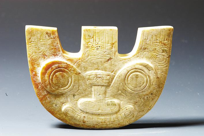 新石器時代 良渚文化 獸面紋玉三叉形器 浙江省博物館藏