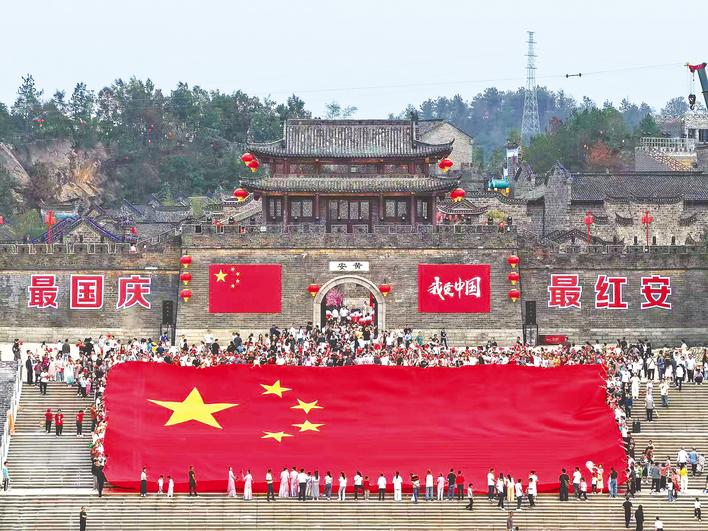 “十一”長假期間,巨幅國旗耀紅安,“大別山國潮文化旅游節(jié)”在紅安影視幻城舉行。“赤黃紅”荊風楚韻文化旅游線路精彩紛呈。(湖北日報通訊員 王亮 攝)