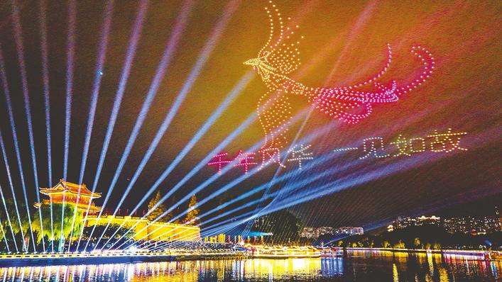 “當(dāng)數(shù)百架無人機在荊州古城上方定格為虎座鳥架鼓、越王劍及楚辭詩句時,我的腦海里只有八個字:千年古城,一見如故?!?0月3日,從鄭州自駕到荊州的游客徐帆,被荊楚文化深深震撼。今年國慶中秋“雙節(jié)”,荊州文旅市場用“文旅+科技”的古今碰撞,打造了一系列沉浸式新場景、新業(yè)態(tài),讓濃郁的煙火氣與穿越千年的歷史感,交織出楚韻十足的假日圖景。(湖北日報全媒記者 何輝 通訊員 周櫟 劉秋娥 攝)