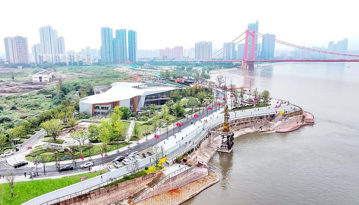 時間來到2022年3月,洪山江灘公園開園,成為生態廊道的重要節點。5年來,通過16個重點工程項目建設,分布于兩江四岸的江灘公園逐漸連點成線,成為一個有機整體。
