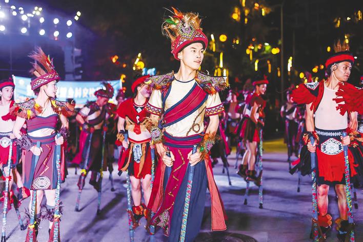 11月2日晚,第六屆荊楚鄉(xiāng)村文化旅游節(jié)在宣恩縣開(kāi)幕。來(lái)自省內(nèi)各地的表演類非遺項(xiàng)目與民俗文化展演,呈現(xiàn)了一場(chǎng)地域特色與文化交融的民俗和民歌盛宴,給游客打造了行進(jìn)式踩街巡游體驗(yàn)。(湖北日?qǐng)?bào)全媒記者 王晶 通訊員 鄂文旅 陳明 攝)