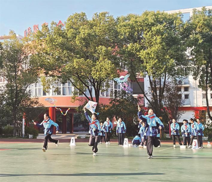 “風箏如何飛得更高、更遠?”帶著這一問題,陽光校區的學生席地而坐調試風箏,他們動手調整重心、優化結構、改進放飛角度。科學老師王凱陪同孩子們一同操作,她說:“孩子們走出教室,在實踐中探索問題的答案,每一次討論和試飛,都在他們心中留下了很深的印象。”