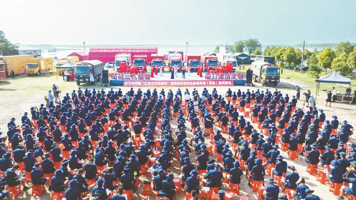 荊楚“紅色文藝輕騎兵”走進抗洪搶險練兵場。